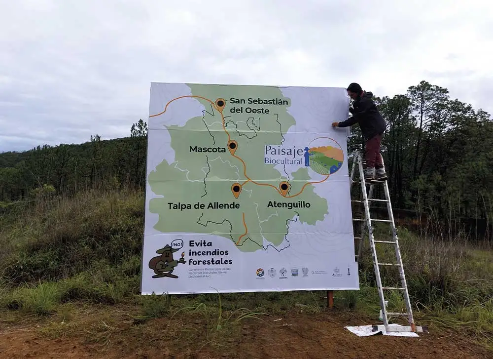 Rehabilitación de estructuras y diseño gráfico de espectaculares para mostrar la riqueza del territorio: Atenguillo, Mascota, Talpa de Allende y San Sebastián del Oeste, Jalisco. Proyecto derivado del trabajo teórico y técnico “Red de senderos multiusos del Paisaje Biocultural de la Sierra Occidental de Jalisco”; en colaboración con Paisaje Biocultural de la Sierra Occidental de Jalisco.